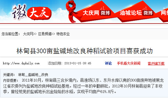 • 大慶市大同區對喜村鹽堿地改良任務